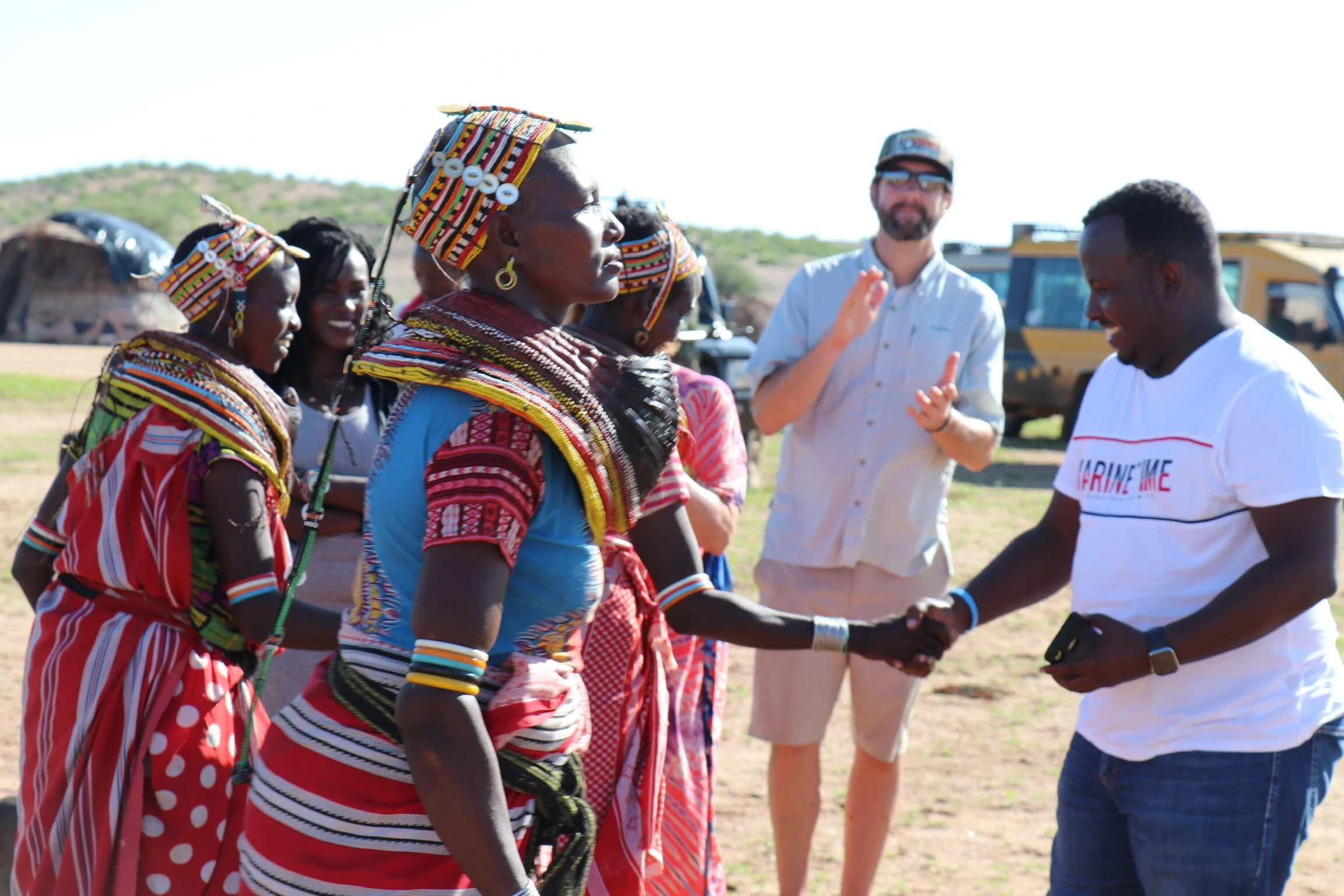 When we arrived in villages we were met with song and dance. Dr. Henley joins in!